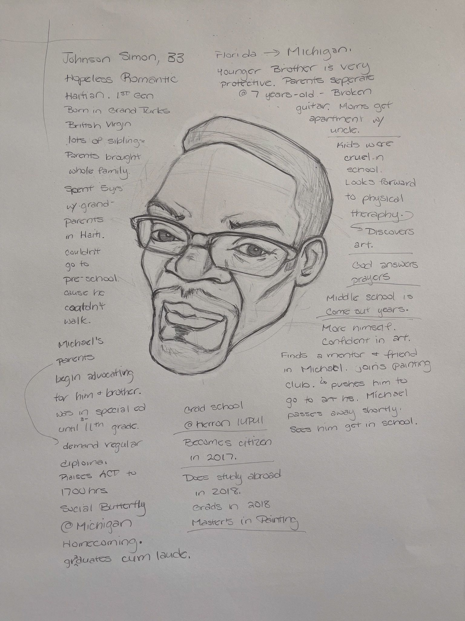 During my time with the program I hosted over 60 drawing sessions. Not only did my technical skills improve but I became a more empathetic artist and a better listener. I would spend more time asking questions and taking notes than drawing the person.